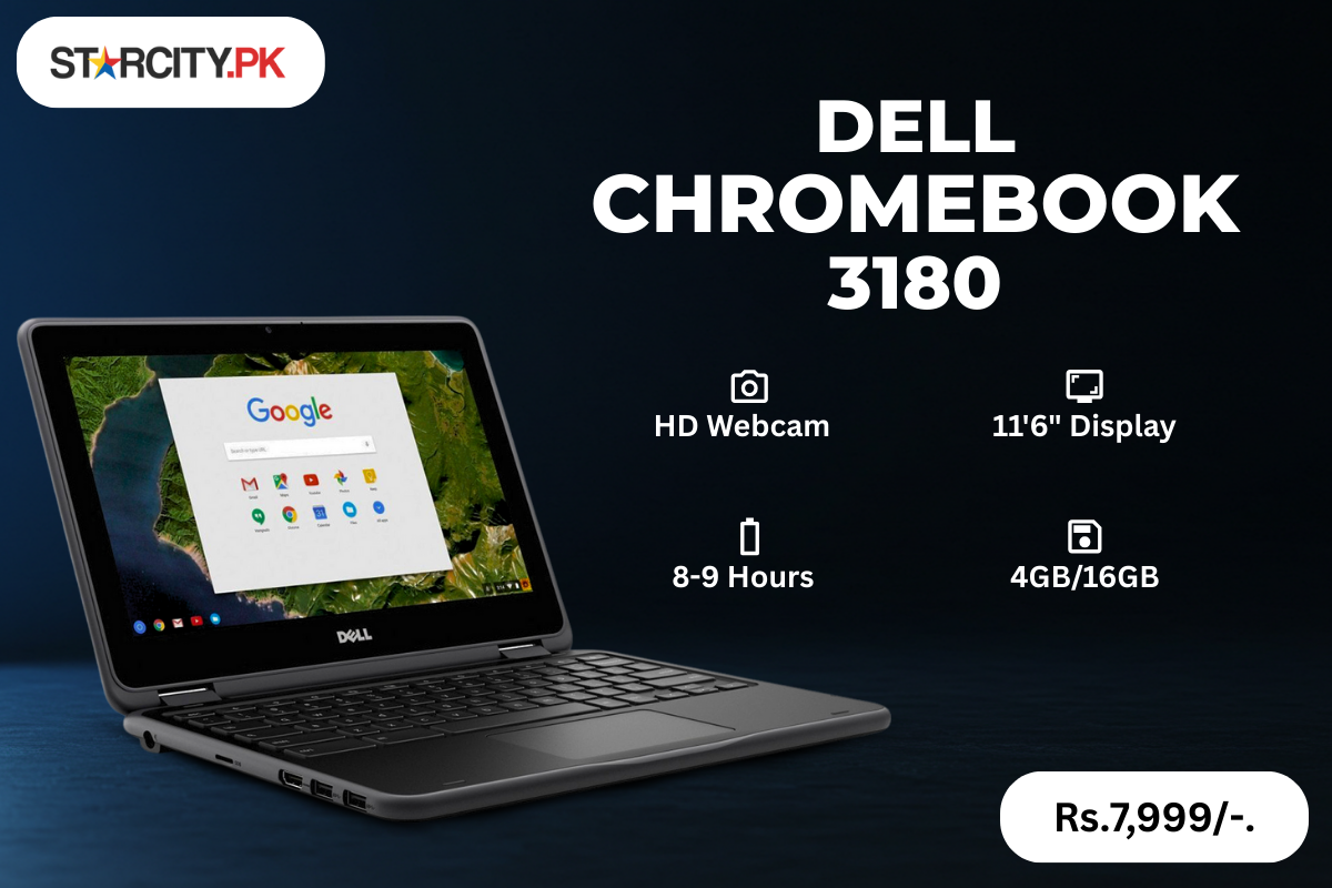 Dell Chromebook 3180 price in Pakistan Rs.7,999/-. The Dell Chromebook 3180 is popular for its compact design and reliable performance at an affordable price. Equipped with an 11.6-inch HD display, Intel Celeron processor, and 4GB RAM, it easily handles tasks like online learning, browsing, and office work. With a battery backup of 5 to 6 hours, it provides enough power for a school or workday on the go. Its sturdy build makes it a trusted choice for students, while professionals appreciate its portability and efficiency. Overall, the 3180 is a budget-friendly Chromebook that balances performance and convenience.