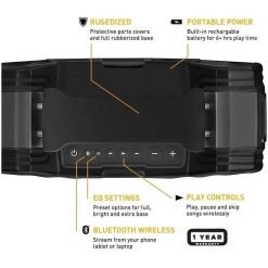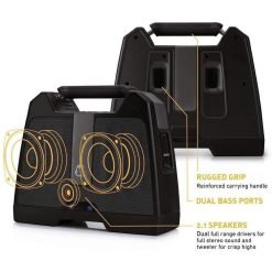 - Built super tough with a rugged housing and a protective rubber base. 2.0 features radio as well as deeper, more resonant and more powerful bass.