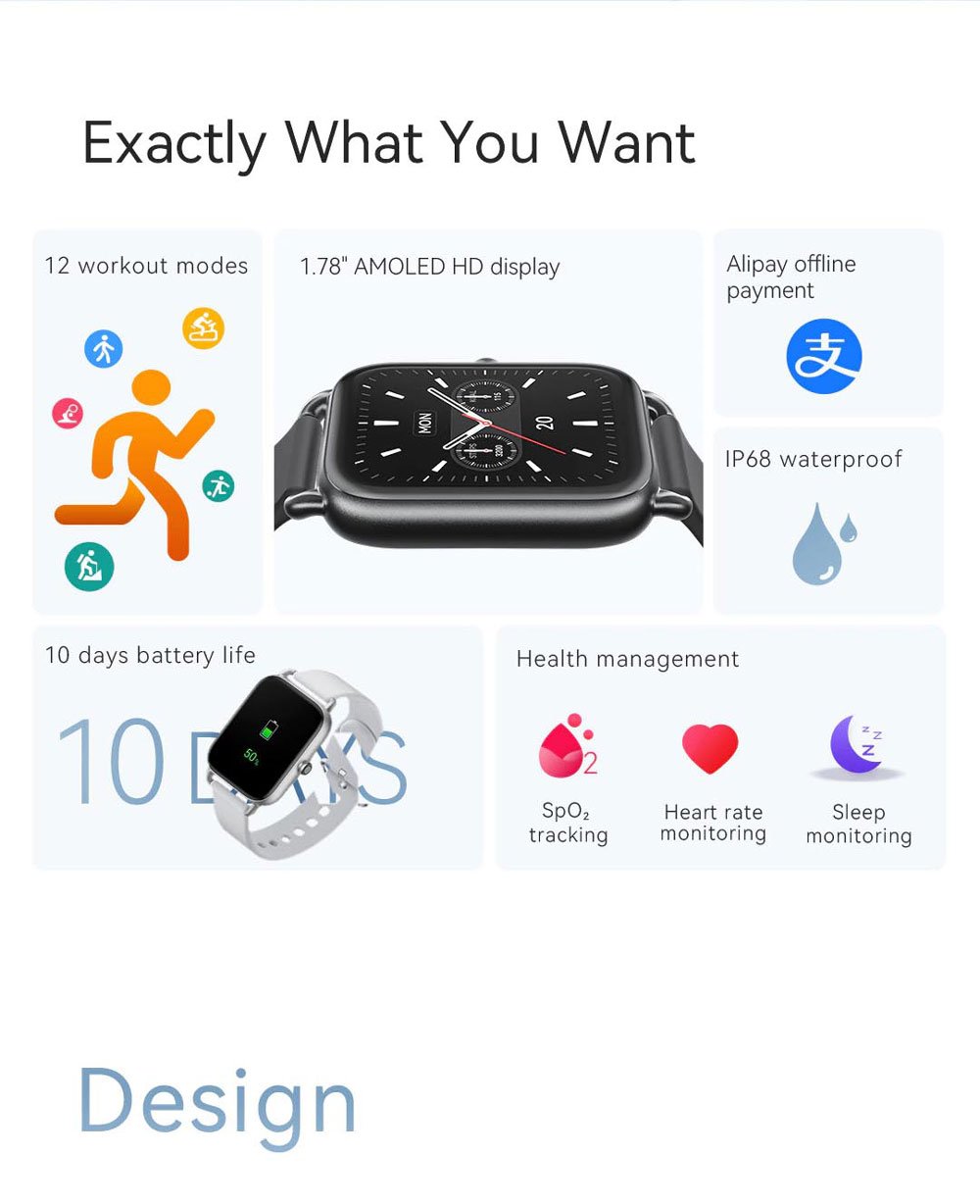 | Sensors | Heart rate sensor, motion sensor, blood oxygen sensor |
