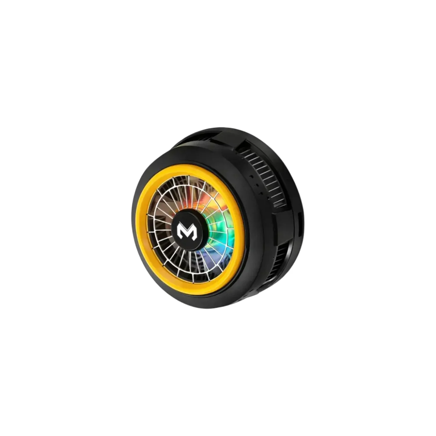 The cooler has an RGB-style fan area, giving the accessory a gaming-focused look while keeping the design portable and easy to use.