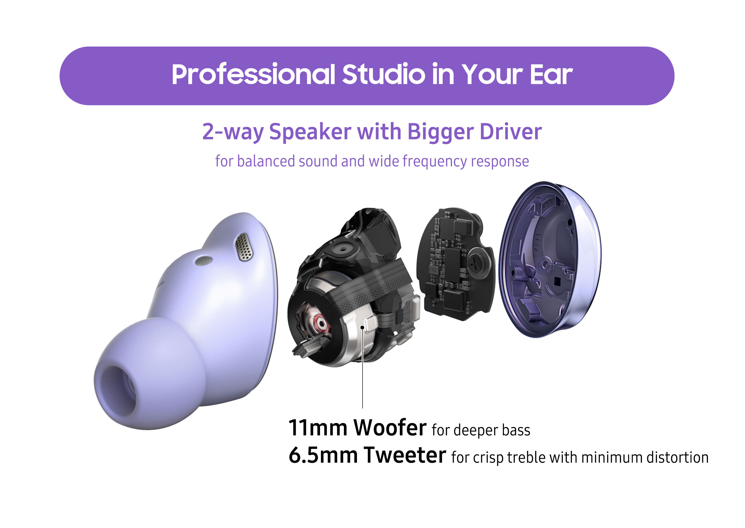 ✅ Speaker: 2-way (11mm woofer + 6.5mm tweeter)
